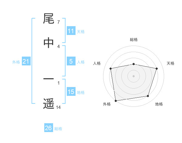 尾中 一遥さんの総格は26画の2点!