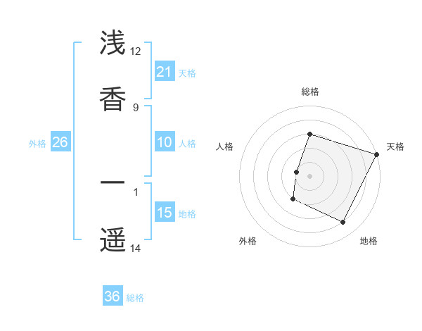 浅香 一遥さんを姓名の画数から五運を鑑定