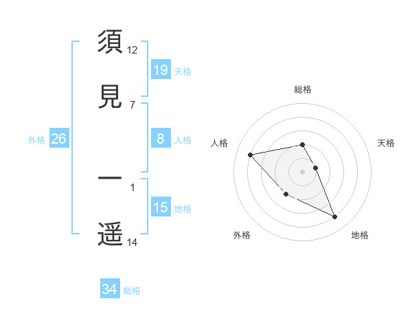 須見 一遥さんの総格は34画の2点!