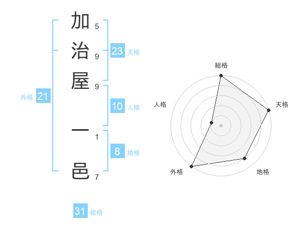 加治屋 一邑さんを姓名の画数から五運を鑑定
