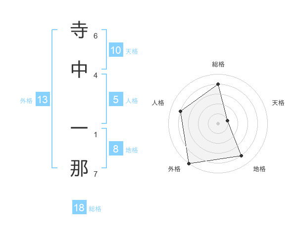 寺中 一那さんの総格は18画の4点!
