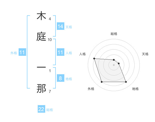 木庭 一那さんの総格は22画の1点!