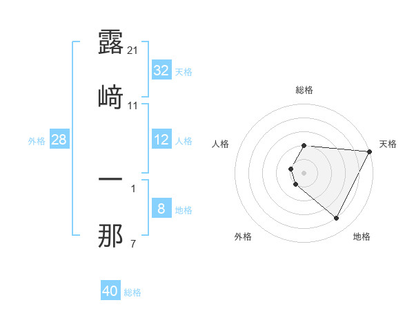 露﨑 一那さんの天格は32画の5点!