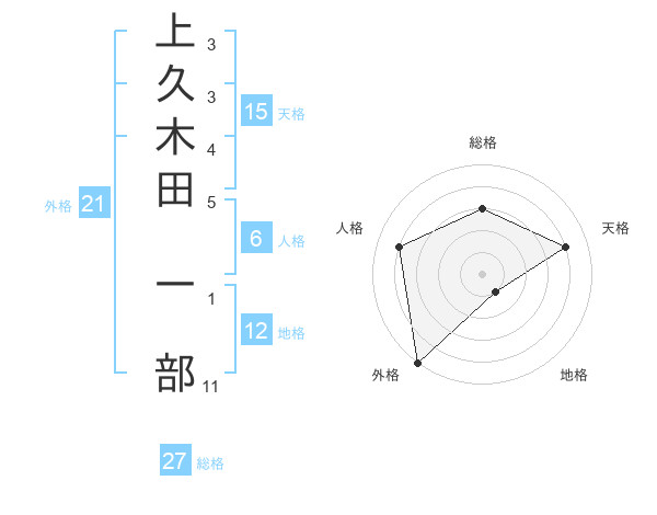 上久木田 一部さんの総格は27画の3点!