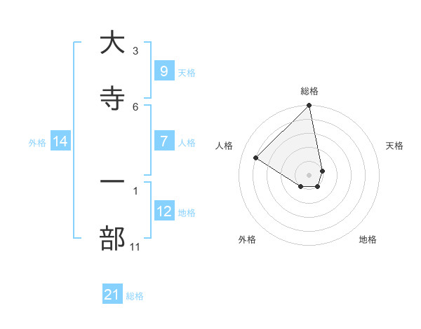 大寺 一部さんの総格は21画の5点!