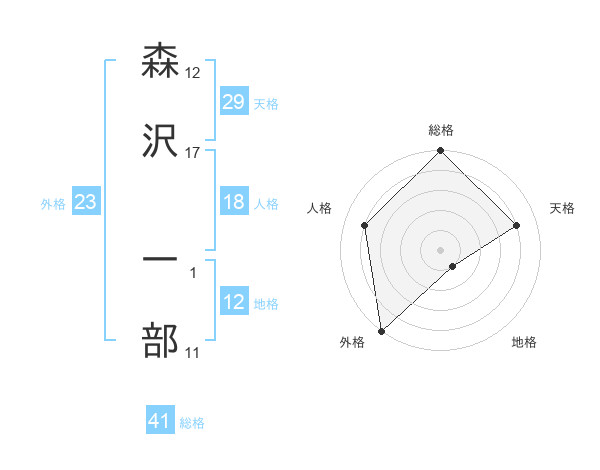森沢 一部さんの総格は41画の5点!