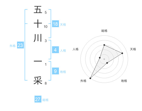 五十川 一采さんの総格は27画の3点!