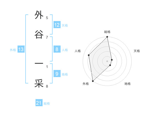 外谷 一采さんの外格は13画の5点!