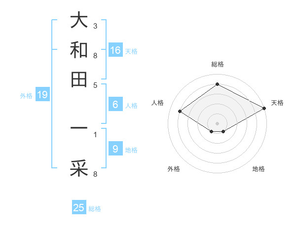 大和田 一采さんの総格は25画の4点!