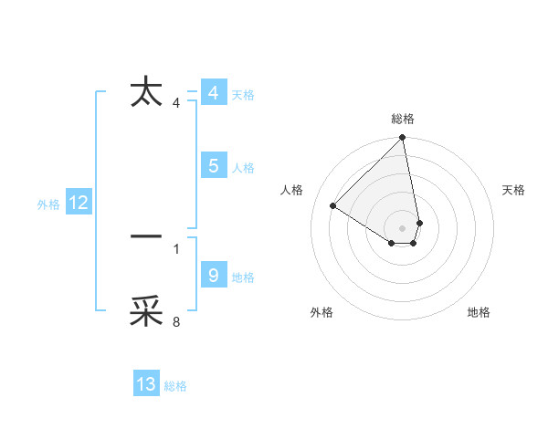 太 一采さんの総格は13画の5点!