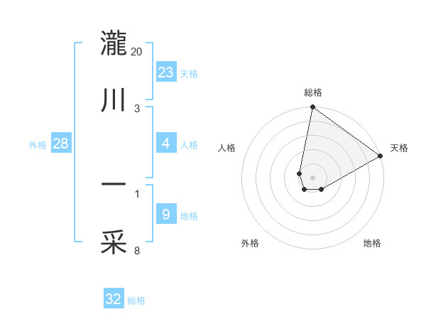 瀧川 一采さんを姓名の画数から五運を鑑定