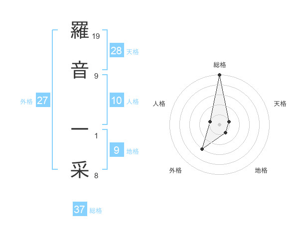 羅音 一采さんの総格は37画の5点!