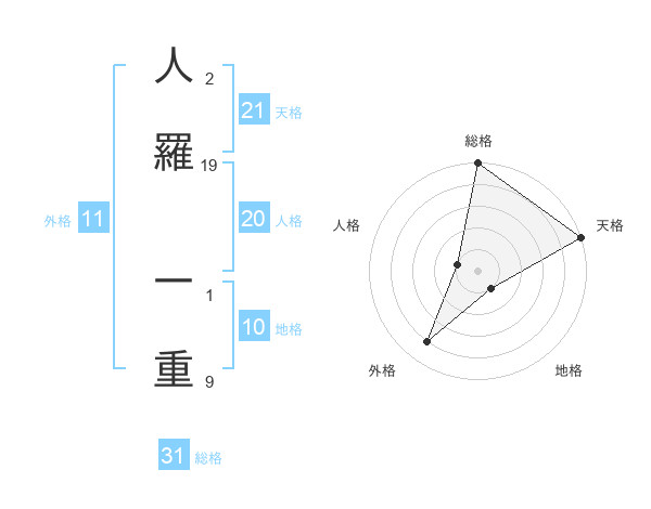 人羅 一重さんの総格は31画の5点!