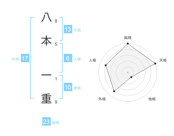 八本 一重さんの天格は13画の5点!