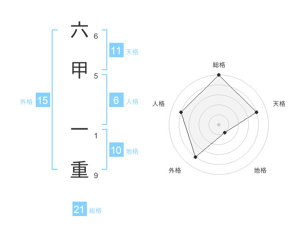 六甲 一重さんの天格は11画の4点!