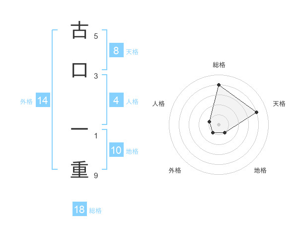 古口 一重さんの天格は8画の4点!