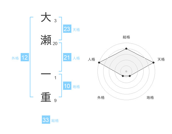 大瀬 一重さんを姓名の画数から五運を鑑定