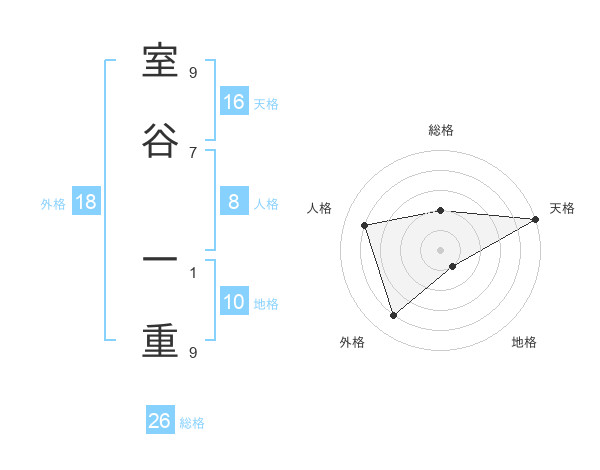 室谷 一重さんの総格は26画の2点!