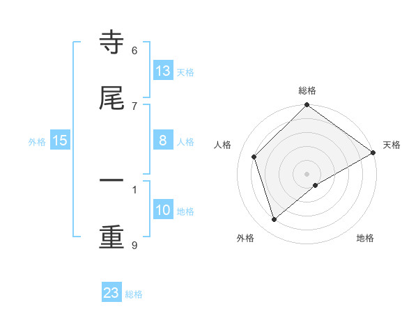 寺尾 一重さんの天格は13画の5点!