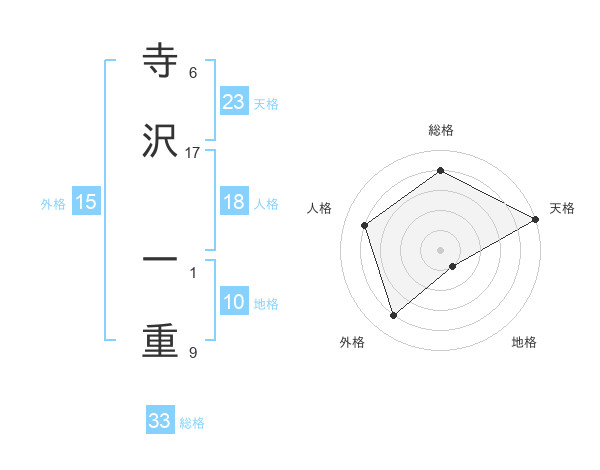 寺沢 一重さんの天格は23画の5点!