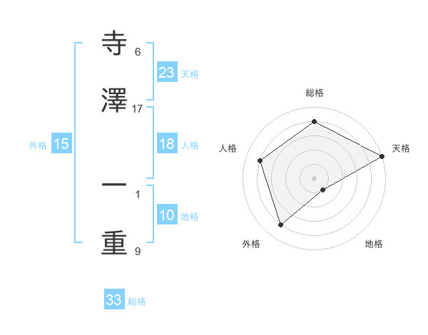 寺澤 一重さんを姓名の画数から五運を鑑定