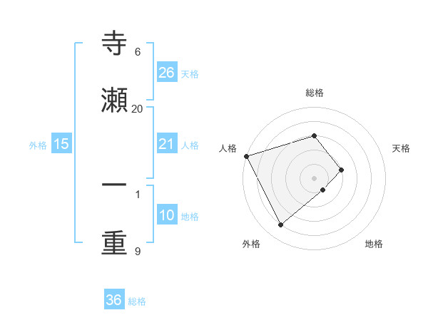 寺瀬 一重さんの天格は26画の2点!