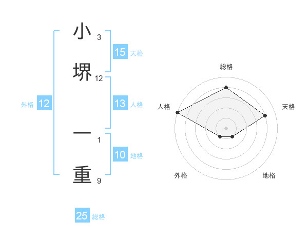 小堺 一重さんの外格は12画の1点!