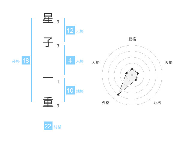 星子 一重さんの総格は22画の1点!