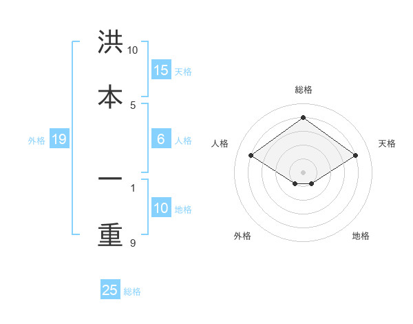 洪本 一重さんの総格は25画の4点!