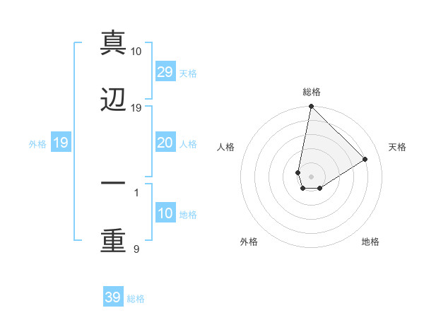 真辺 一重さんの総格は39画の5点!