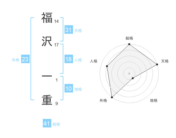 福沢 一重さんの天格は31画の5点!