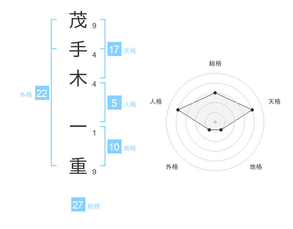 茂手木 一重さんを姓名の画数から五運を鑑定