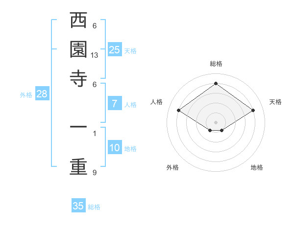 西園寺 一重さんの総格は35画の4点!