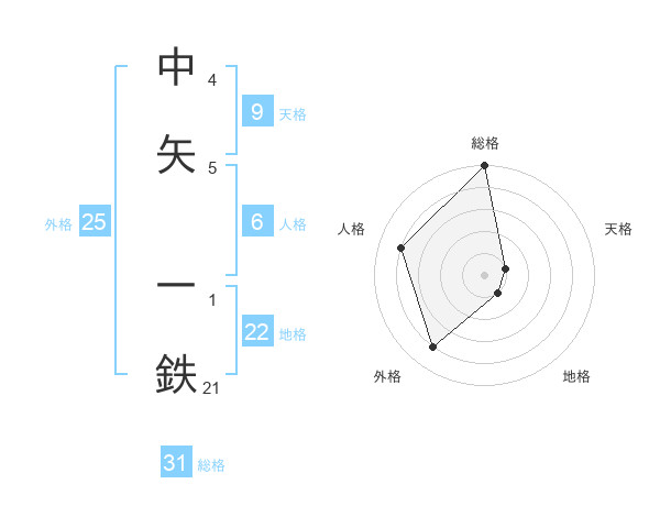 中矢 一鉄さんを姓名の画数から五運を鑑定