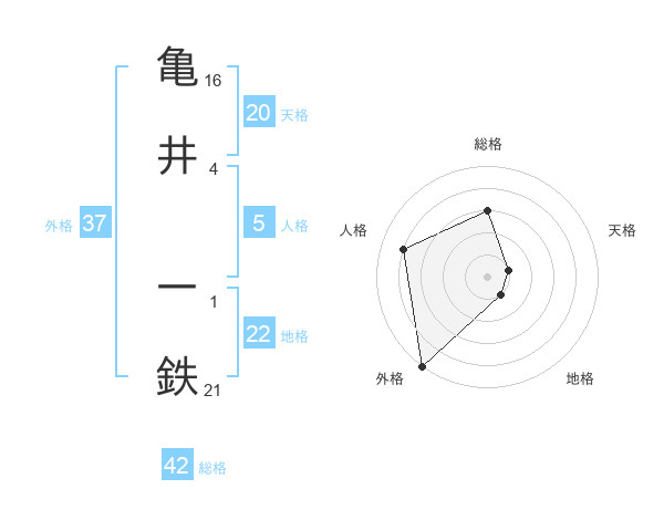 亀井 一鉄さんの外格は37画の5点!