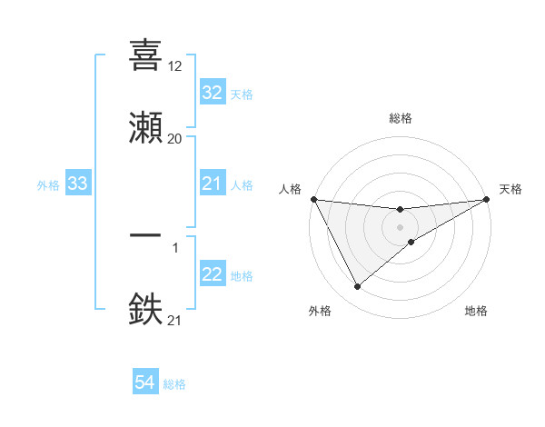 喜瀬 一鉄さんの外格は33画の4点!