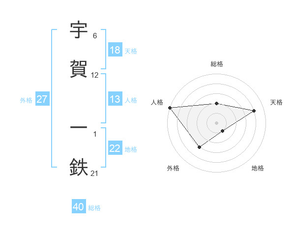宇賀 一鉄さんの地格は22画の1点!
