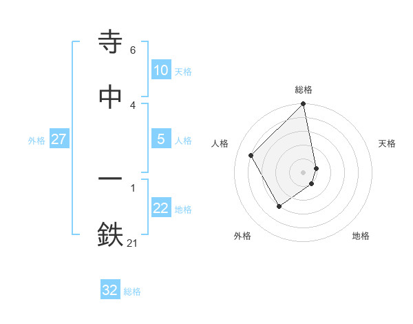 寺中 一鉄さんの総格は32画の5点!