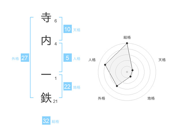 寺内 一鉄さんの総格は32画の5点!