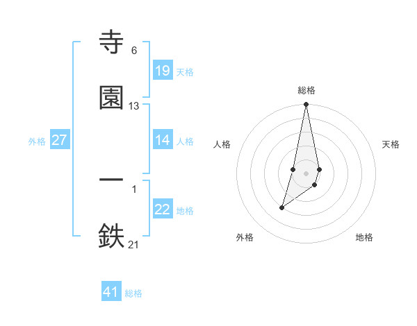 寺園 一鉄さんの地格は22画の1点!