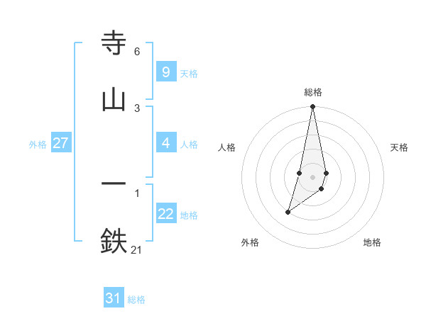 寺山 一鉄さんの総格は31画の5点!