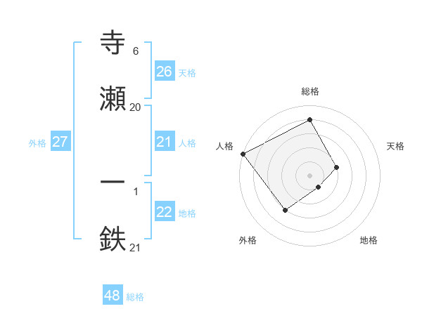 寺瀬 一鉄さんの天格は26画の2点!