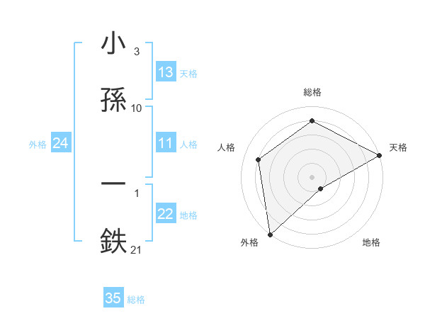 小孫 一鉄さんの天格は13画の5点!