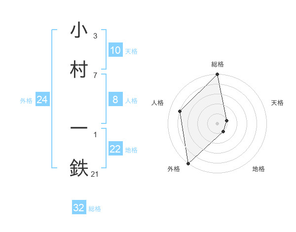 小村 一鉄さんを姓名の画数から五運を鑑定
