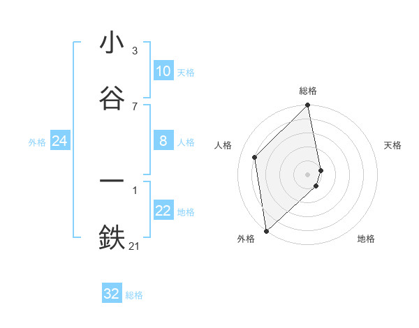 小谷 一鉄さんを姓名の画数から五運を鑑定