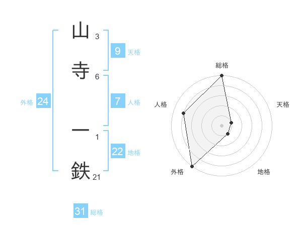 山寺 一鉄さんの総格は31画の5点!