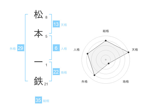 松本 一鉄さんの天格は13画の5点!