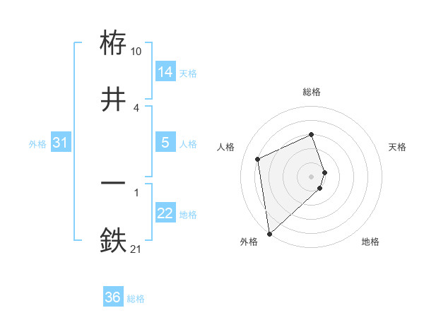 栫井 一鉄さんを姓名の画数から五運を鑑定