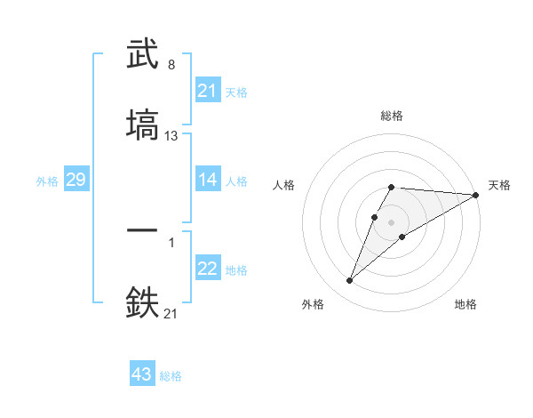 武塙 一鉄さんを姓名の画数から五運を鑑定