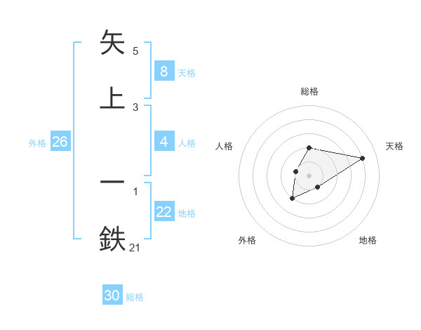 矢上 一鉄さんの天格は8画の4点!